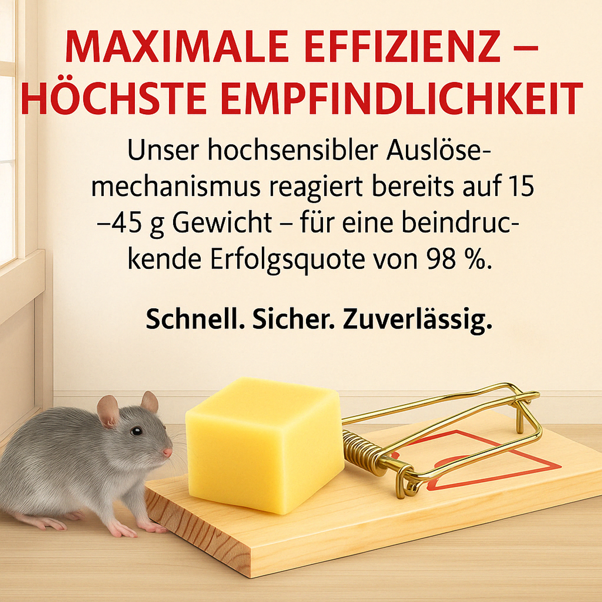 Dank der kompakten Maße lassen sich die Fallen unauffällig in Ecken oder entlang von Wänden platzieren – genau dort, wo sich Mäuse bevorzugt aufhalten.