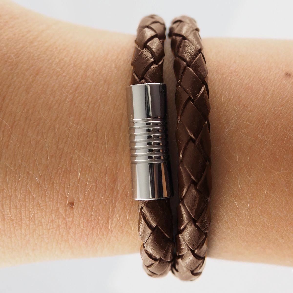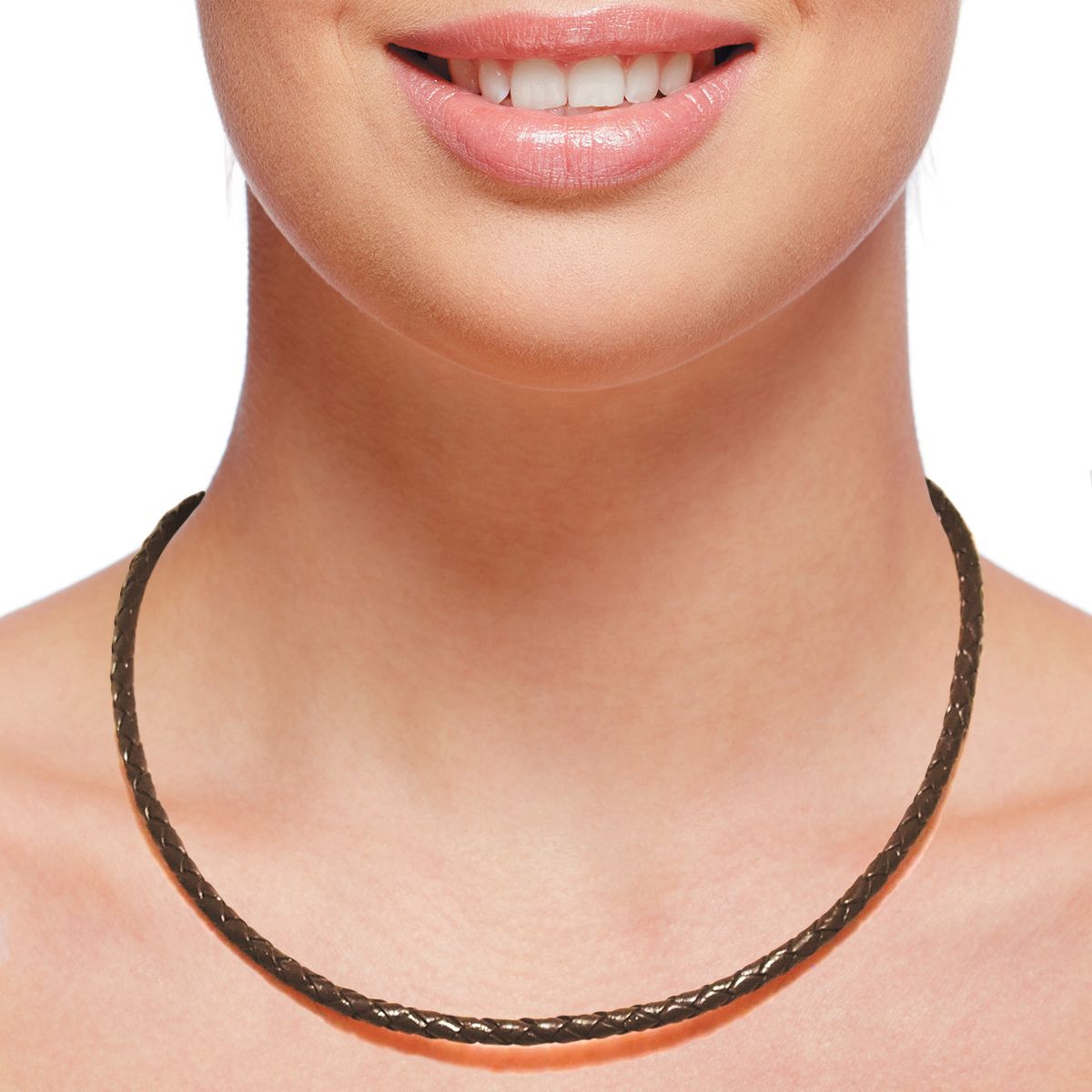Lederkette geflochten Leder-Band Halskette mit Anhänger Damen Kette 4 mm Braun