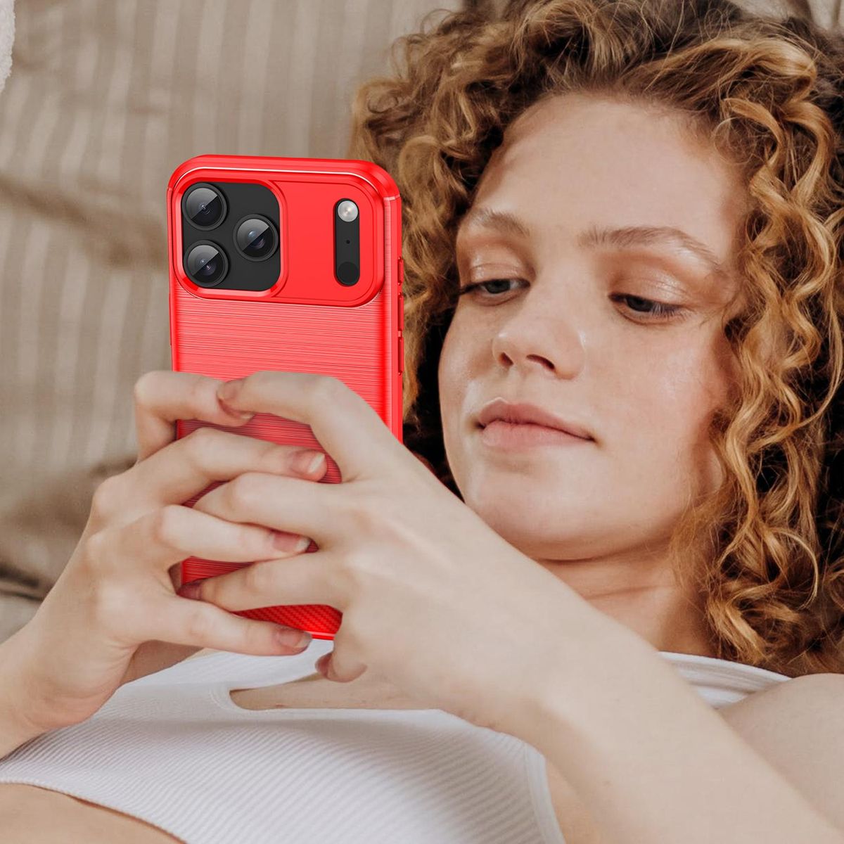 Diese Schutzhülle für das iPhone 17 Pro Max kombiniert ein modernes, sportliches Design mit alltagstauglichem Schutz. Die Oberfläche in gebürsteter Carbonfaser-Optik verleiht dem Case eine hochwertige Ausstrahlung und sorgt zugleich für eine angenehme Haptik. Durch das flexible TPU-Material lässt sich die Hülle einfach anbringen und wieder abnehmen.