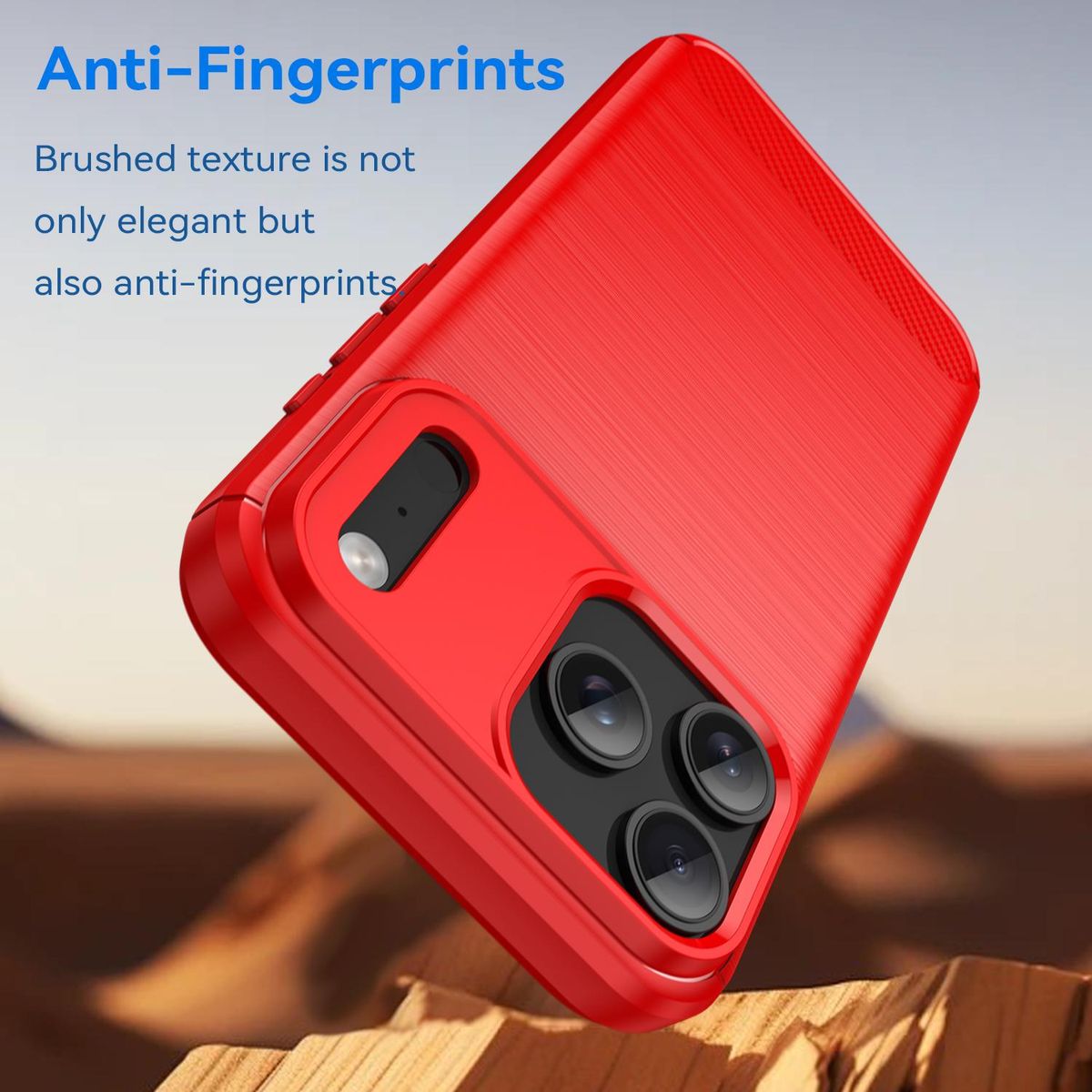 Flexible TPU-Hülle mit gebürsteter Carbonfaser-Optik, passgenau für das iPhone 17 Pro Max, schlankes Design, angenehme Griffigkeit und verfügbar in Blau, Rot und Schwarz.