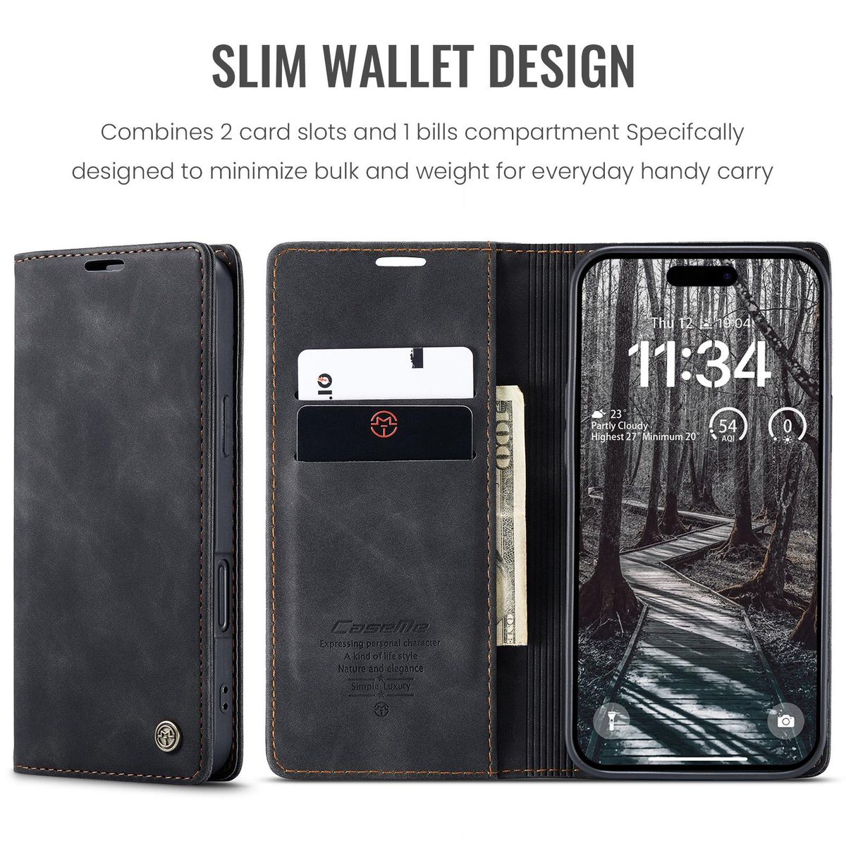 - MAGNETVERSCHLUSS: Sicherer Verschluss hält die Hülle geschlossen und schützt Karten sowie Smartphone.