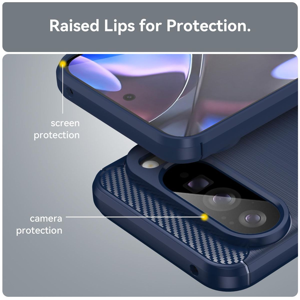 Diese hochwertige Schutzhülle für das Google Pixel 10 Pro XL kombiniert modernes Design mit zuverlässigem Schutz im Alltag. Die gebürstete Carbonfaser-Optik sorgt für eine edle, sportliche Optik und bietet gleichzeitig eine angenehme, rutschhemmende Oberfläche.