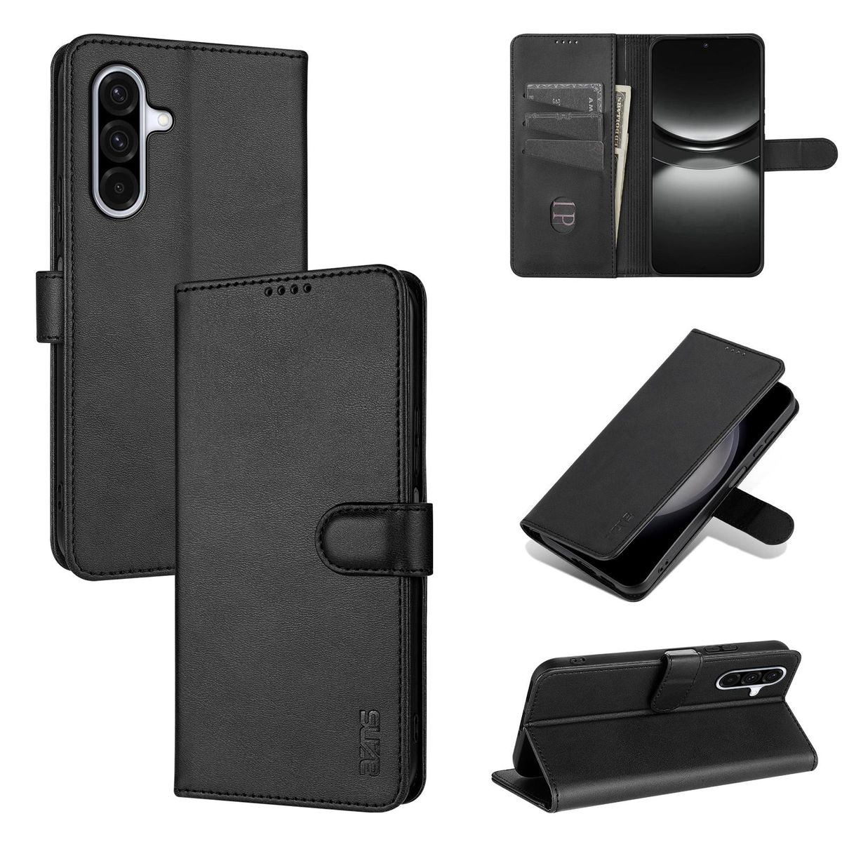 Handyhülle für Samsung Galaxy A17 Kunstleder Case Cover Schwarz