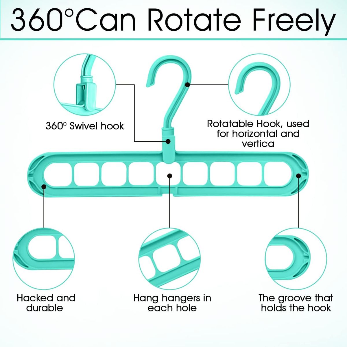- ????【360 DREH DREHBARER HAKEN】--- Mit einem 360-Grad Haken können Sie Ihre Kleidung nach Belieben frei aufhängen. Eine größere Hakenöffnung (1,6 Zoll) könnte für einen größeren Bereich von Kleiderstangen durchmessern geeignet sein.