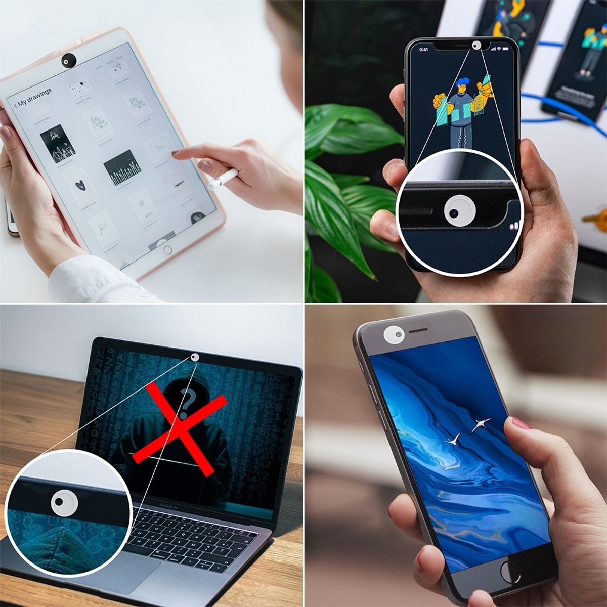- Einfache Installation: Die Kameraabdeckungen lassen sich leicht anbringen und entfernen, ohne dass Werkzeug oder Klebstoff erforderlich ist. Einfach auf die Kamera aufschieben und bei Bedarf abnehmen.