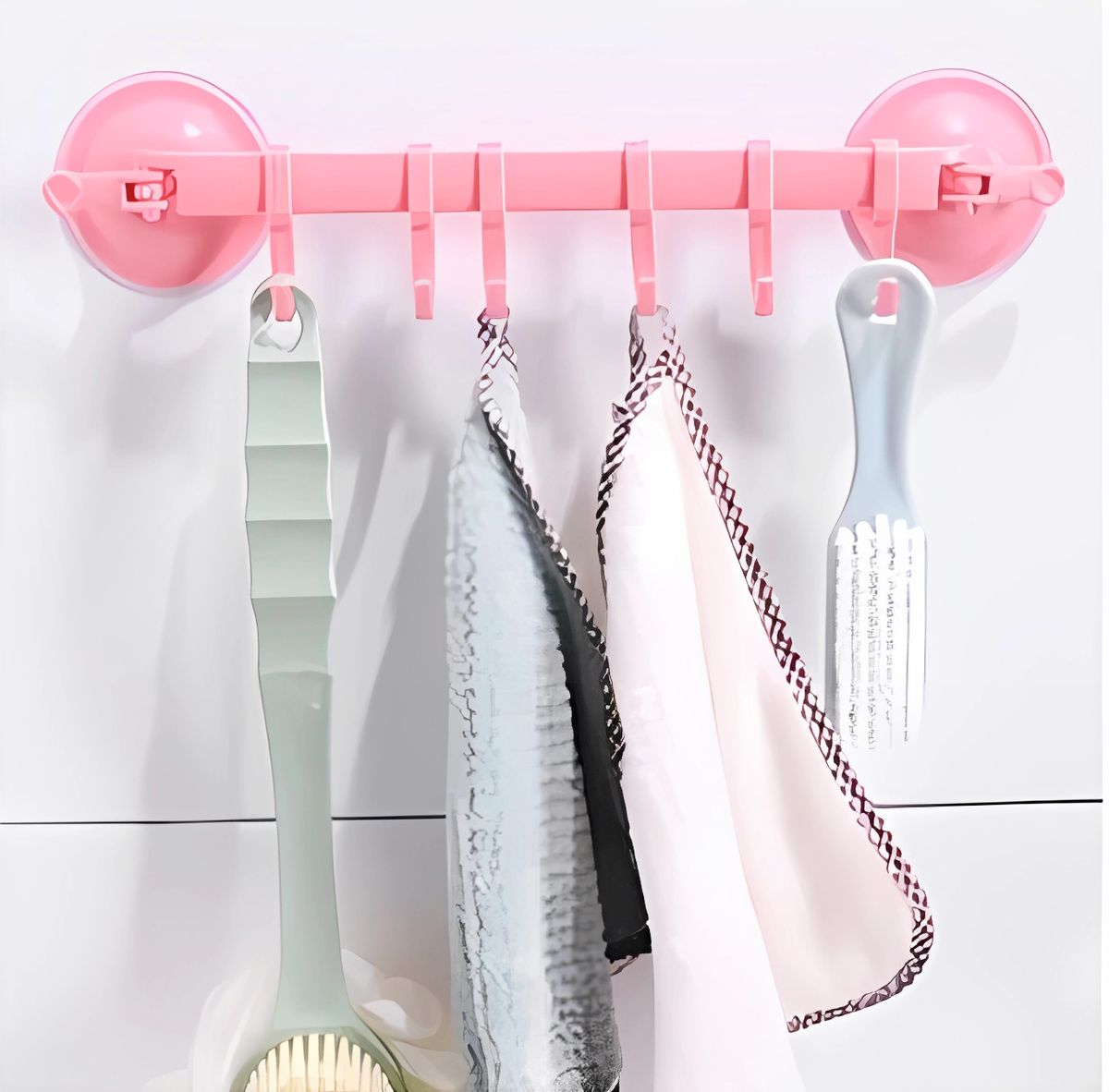 Der verstellbare Saugbecher-Handtuchhalter und Badezimmer-/Küchenorganisator ist ein vielseitiges und praktisches Accessoire für Ihr Zuhause. Mit seinem intelligenten Design und seiner leistungsstarken Saugnapf-Technologie ermöglicht dieser Halter die einfache und effiziente Aufbewahrung von Handtüchern, Geschirrtüchern, Lappen, Schwämmen und anderen Utensilien in Bad und Küche. In dieser Produktbeschreibung werden die herausragenden Eigenschaften und die vielfältigen Anwendungsmöglichkeiten dieses Produkts erläutert.