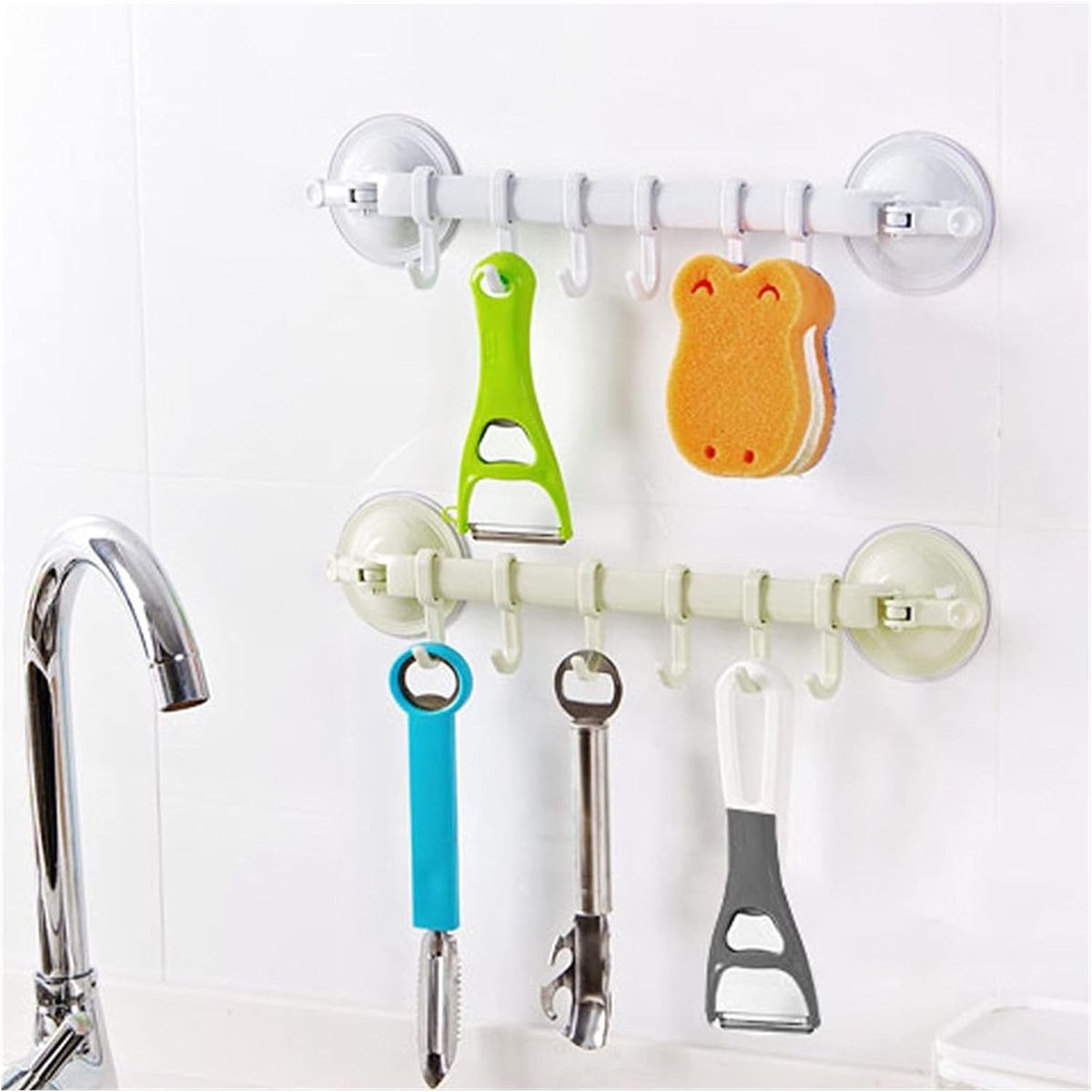 Dieser Handtuchhalter und Organisator eignet sich nicht nur für Handtücher, sondern auch für Geschirrtücher, Lappen, Schwämme und andere Küchen- und Badezimmerutensilien. Sie können ihn im Badezimmer, in der Küche, im Waschraum oder sogar im Wohnmobil verwenden.