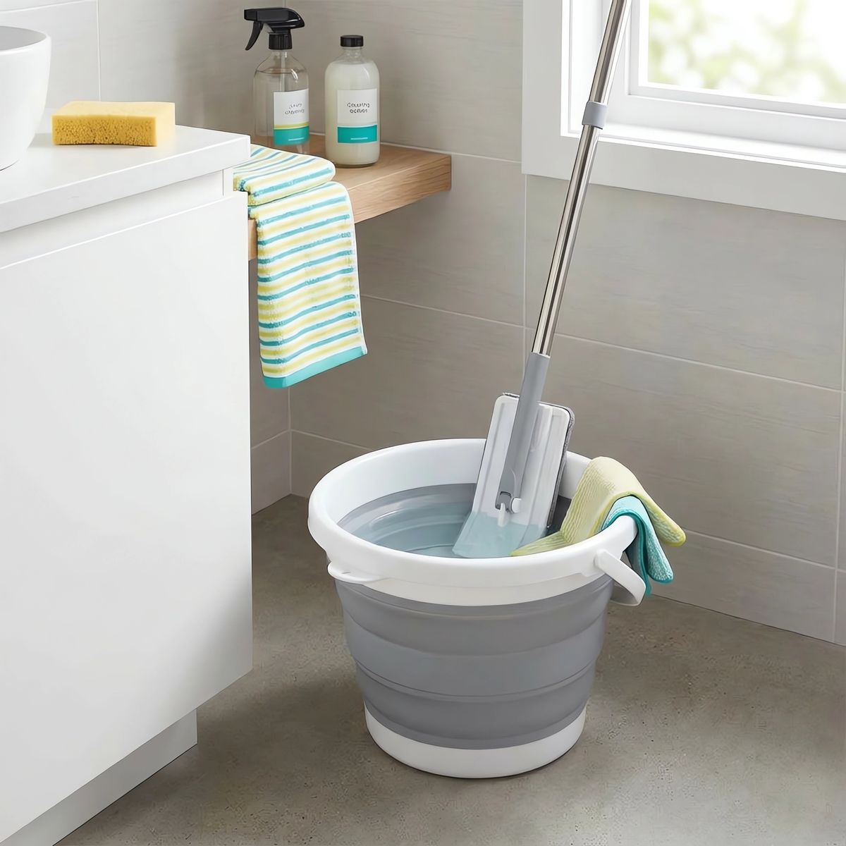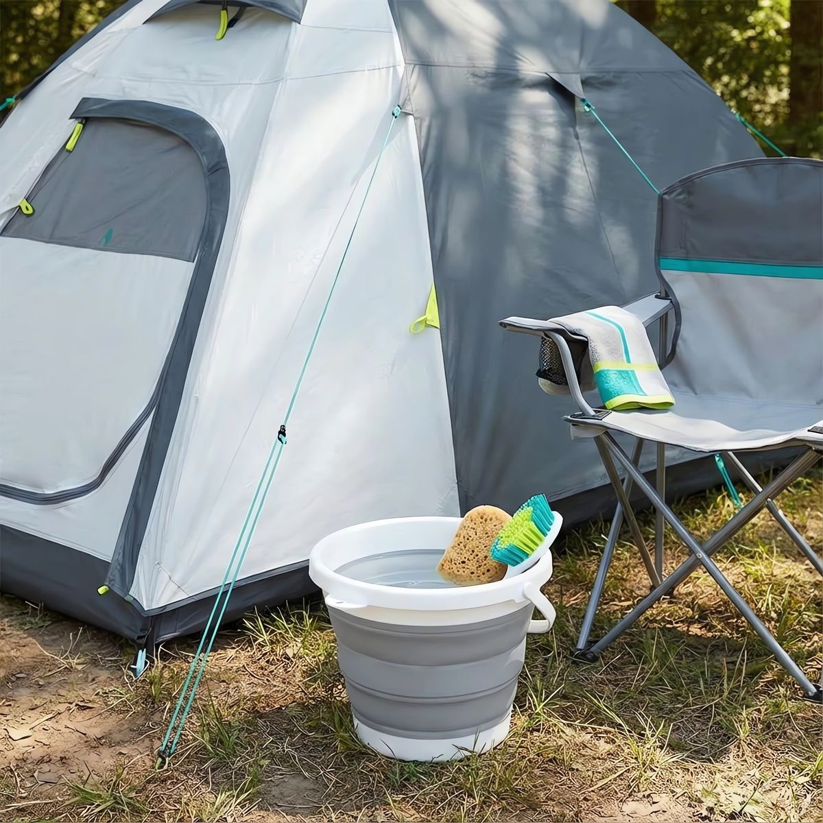 Das faltbare Design ermöglicht es Ihnen, den Eimer bei Bedarf einfach zu öffnen und nach Gebrauch kompakt zusammenzufalten. Dies ist besonders nützlich, wenn Sie wenig Platz zur Verfügung haben oder ihn auf Reisen mitnehmen möchten. In zusammengefaltetem Zustand nimmt der Eimer nur minimalen Raum ein, was ihn zur idealen Lösung für Campingausflüge oder Reisen mit begrenztem Stauraum macht.