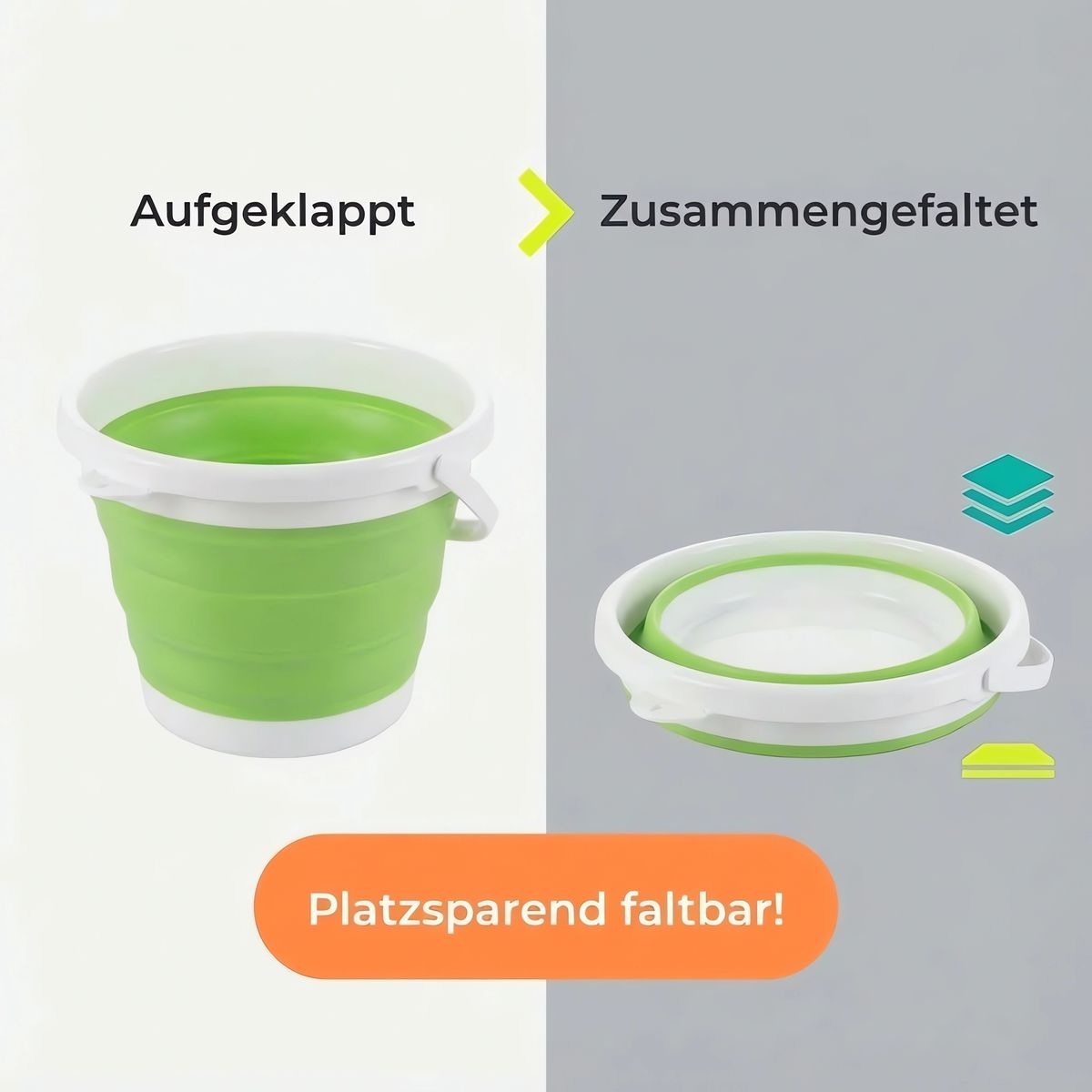 Faltbares Design: Der Wassereimer kann bei Nichtgebrauch platzsparend zusammengefaltet werden, was ihn ideal für Reisen und platzbeschränkte Umgebungen macht.