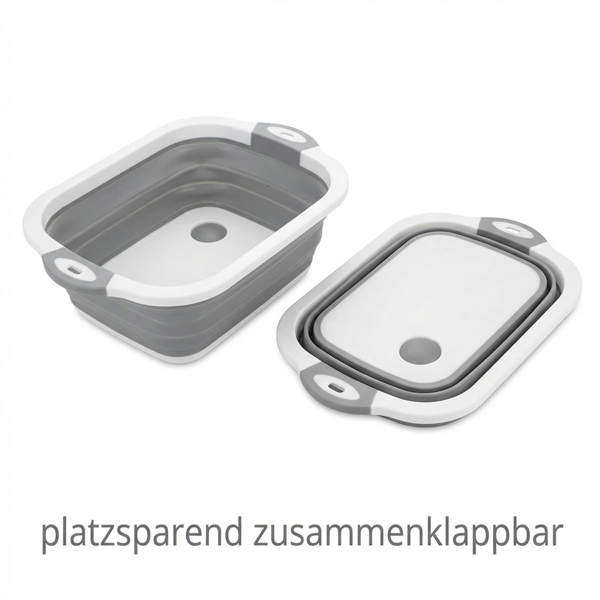 - Funktion: Schneidebrett, Spülschüssel & Aufbewahrungskorb in einem