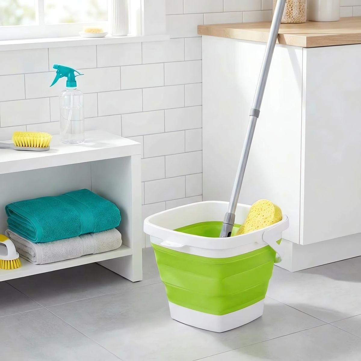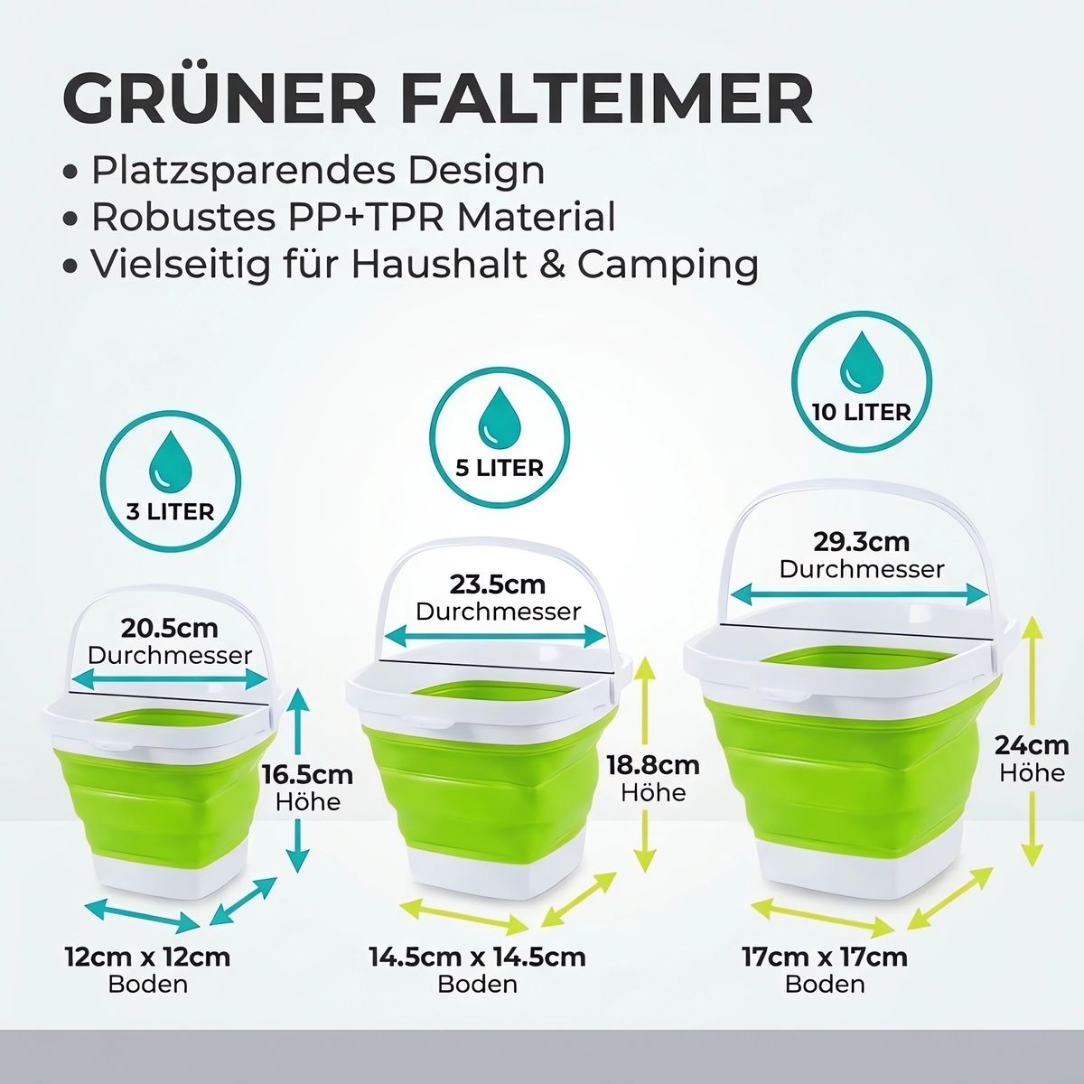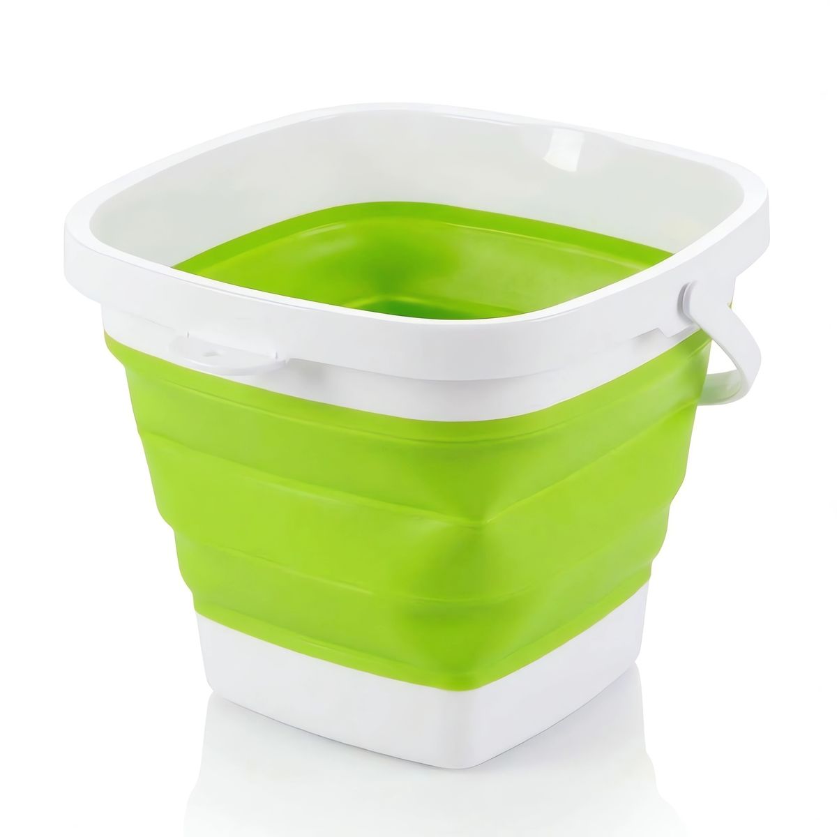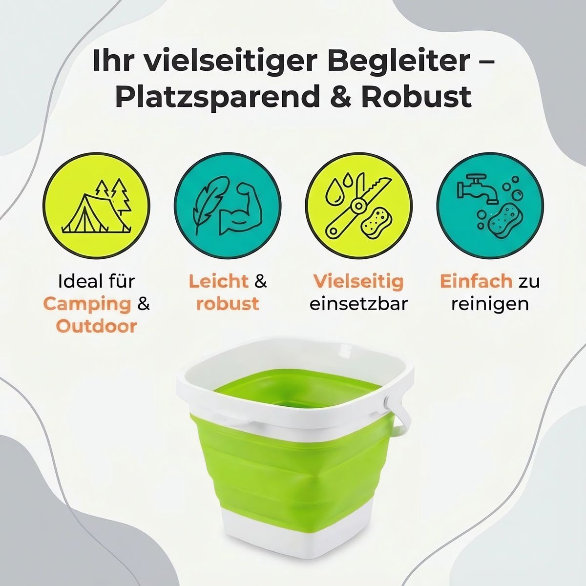- Platzsparendes Design: Dieser Eimer verfügt über ein zusammenklappbares Design, das es ermöglicht, ihn bei Nichtgebrauch platzsparend zu verstauen. Er lässt sich flach zusammenfalten und nimmt daher wenig Platz ein.